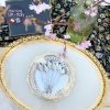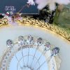 Mỗi chiếc thìa được đúc khuôn hoàn hảo với lòng thìa trũng nhẹ bạc sáng bóng & tay câm nhỏ xinh tròn với đầu thìa đúc núm như quả chuông ngân vang. Sau khi chiếc thìa được tạo khuôn bạc, nghệ thuật phủ men & vẽ từng bông hoa trên mặt ngoài thìa là 1 sự kinh ngạc. Bạn có thể kể tên các loài hoa? Hồng cổ nhất Briar chen hoa lưu ly xanh xinh đẹp, hoa cúc, hoa hồng Wheatcroft & hoa anh đào xinh xắn