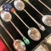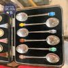 Bộ thìa bạc nguyên chất Anh 6 màu men lục giác.