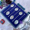 Bộ thìa hiếm đẹp nguyên vẹn 1 thời tinh xảo của làng bạc Birmingham đựng trong hộp đựng sang trọng nhung & bọc da khiến bạn có thể ngắm, có thể dùng xong và cất đi giữ gìn cho nhiều đời sau.