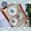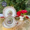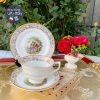 Đĩa lót tách/ đĩa ăn bánh với dải hoa mạ vàng 22ktc & cảnh đôi trong lòng đĩa xao xuyến người nâng tách.