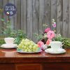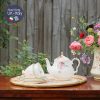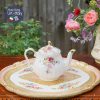 Ấm Sadler xoáy vân với mạ vàng đầu nắp ấm, tay cầm và miệng ấm khiến đoá hồng rủ xinh đẹp và hài hoà cùng bộ tách. Shop rất vui vì đã tạo nên được bộ trà chiều 2 người kèm chiếc ấm phù hợp và bạn có thể dùng khi phối với các bộ trà hoa khác.