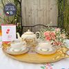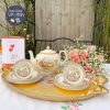 Kèm theo khay tím lilac, khay tròn gỗ Florence tại Shop & trà nhài ngọc trai hay Darjeeling làm nên món quà trọn vẹn.