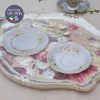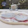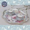 Ra đời sau 1945, mẫu tách dáng Malvern với chân nhô, thót đế mở rộng dần miệng tách với cảm giác nổi thớ gốm nhẹ khi áp tay và quai nhọn C ngược luôn là 1 trong những mẫu tách tiêu biểu của Royal Albert. Bộ trà bạn đang ngắm là ví dụ mẫu tách này. Chi tiết hồng anh điểm tô trong và ngoài lòng tách, đĩa lót, đĩa bánh vô cùng khác lạ khiến bộ trà mãn nhãn, nhẹ nhàng duyên dáng.