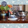 Mẫu hoạ tiết liễu và chùa bất biến trong gốm Anh xanh trắng.
