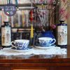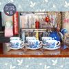 Bộ trà 6 người xanh trắng hoạ tiết liễu Broadhurst c1960.