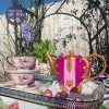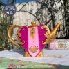 Ấm tim hồng vẽ tay với quai ấm và vòi ấm phủ vàng. Ấm vẽ theo phong cách rất thần tiên.
