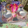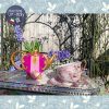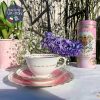 Tách trà hồng lãng mạn với hoạ tiết chim trên cành.