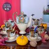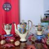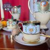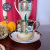 Bộ trà, cafe 4 người vẽ tay dát vàng nổi cánh hoa & những chấm li ti & phủ mạ vàng cháy đậm hơn phong cách Nhật bản.