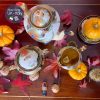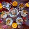 Những bông hoa cam pha xanh lục & xanh lá cây hoà hợp. Phối màu nhấn đậm mang đến tiệc trà phong cách Art Decor.