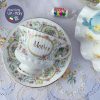 Bộ tách với những vân sọc gốm Anh trắng và khung oval hiện chữ ‘Mother’ với những bông hoa hồng và lá điểm quanh thân tách xinh xắn.
