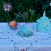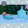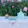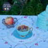 Bộ trà Duo Aynsley hoa quả xanh da trời Cabinet với quả đào, nho trong lòng tách.