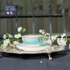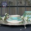 Bộ trà Duo cổ xanh nước ngọc vẽ tay hoa táo gai. Hàng chính hãng UK.