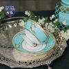 Trang chủ/Products/Gốm sứ/Gốm Anh/Bộ tách lẻ Duo/Trio/Bộ trà Duo cổ xanh nước ngọc vẽ tay hoa táo gai