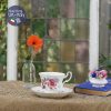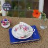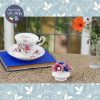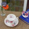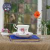 Bộ trà gồm tách và lót tách, kèm hoa sứ đúc tháng 8 tạo nên món quà hay kỉ niệm tuyệt vời.