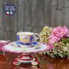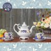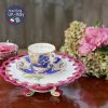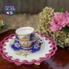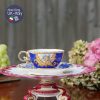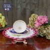 Có quá nhiều điều để dành cho bộ trà trio đúng nghĩa tuyệt tác này. Nào ta cùng bắt đầu với dáng tách trước. Đây là dáng tách đặc trưng của Coalport – nhà gốm đại thụ của gốm sứ xương UK với miệng tách đúc kĩ càng tinh vi uốn lượn & nổi vành. Hình dáng tách này có tên gọi là Pembroke. Khuôn đúc quai cầm cũng tỉ mỉ không kém & nghệ sĩ tạo khuôn phải tính toán rất kĩ càng để khuôn tay cầm được chắc chắn & trong quá trình nung không bị gãy. Về phần men gốm thì thật sững sờ bởi tông men trộn xanh cobalt sáng lạ lùng & phần tài năng nhất của nghệ sĩ vẽ gốm nằm ở những khoang vẽ cảnh khiến ta chìm đắm nín thở ngắm. Rất ít bộ gốm nào vẽ cảnh mà có cả người trên tách & sự sáng tạo mỗi cảnh làng quê thanh bình đều được thể hiện khác nhau trên tách, lót tách.