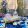 Cùng sở hữu bộ gốm vẽ tay nơ ruy băng xanh xinh đẹp với những bông hồng dải quanh & đeo vào từng decanter khi bạn trút từ chai gốc Whisky, Gin, Port, Sherry.