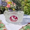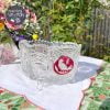 Bát vuông họa tiết chim pha lê Đức xưa tô điểm thêm bàn khách hay góc home decor bởi pha lê được chạm khắc nổi nhiều vân đẹp, miệng pha lê như những dải cờ tam giác. 2 mặt pha lê trang trí xinh xắn 2 khuôn Oval màu đỏ cranberry với hình ảnh chú chim khắc in.