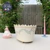 Chậu sắt Decor cây, cắm hoa vẽ tay ruy băng xanh trên nền trắng phấn dịu mắt.