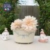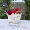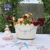 Chậu đựng cho các chậu cây bày trong nhà & vẫn giữ ẩm được cho cây hay dùng cắm hoa như hoa cẩm tú cầu, hoa tổng hợp yêu luôn. Bằng thiếc, sơn vẽ tay duyên dáng dải nơ xanh trên nền trắng.