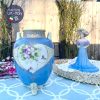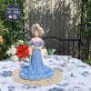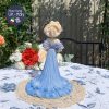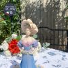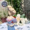 Sự đúc tạc hình tượng gốm Anh luôn mê hoặc với váy cuốn đẹp tông xanh loang mờ và điểm nhấn những cánh hoa cẩm tú cầu hồng vồng trái tim hiện lên trước ngực cô gái. Chiếc mũ đội cao sang và đôi mắt mơ màng với tay cầm hoa trước eo hút ánh nhìn.