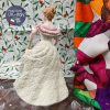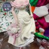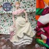 Tông vàng nhẹ và hồng trên váy cùng chiếc mũ điệu đà.
