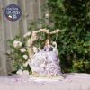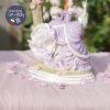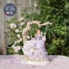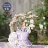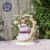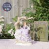 Cô ngồi trong khung cảnh lãng mạn với ghế dây đu, những bông hồng rủ trên ghế và chiếc váy bồng bềnh tím lilac mộng mơ.
