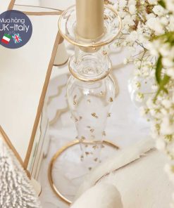 Chân nến thuỷ tinh thổi chấm vàng mạ cao 23cm