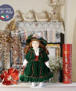 Búp bê tóc nâu môi trầm Victorian váy xanh nhung
