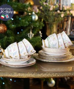 Bộ trà 6 người Paris đế vương xanh lá cây vẽ hoa tay
