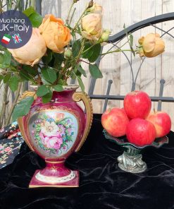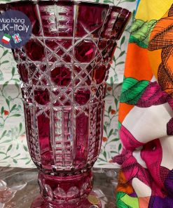 Lọ pha lê xưa Bohemia màu đỏ việt quất cao 35cm đường kính 17cm