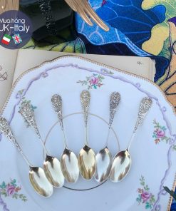 Bộ thìa bạc tráng men vàng hạnh phúc