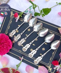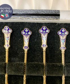 Bộ thìa bạc khắc vẽ hoa văn cobalt