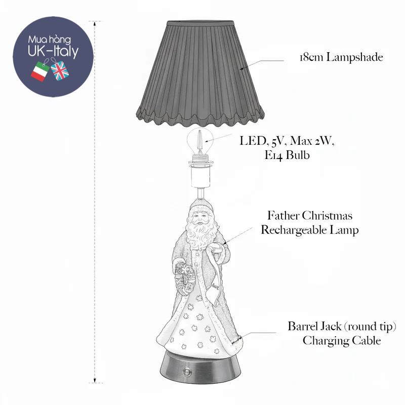 Đèn ông già Giáng Sinh sạc điện UK tạo ánh sáng của không khí tiệc ấm cúng, hồi tưởng kí ức giáng sinh xưa.