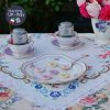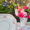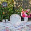 Đĩa vuông China Court bày tiệc hoa hồng vẽ tay bắp cải cùng dải ruy băng lilac quyến rũ.