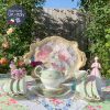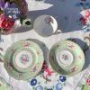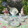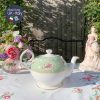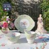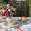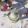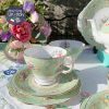 Trong lòng tách và lót tách, nghệ sĩ gốm Foley điểm vẽ nụ hồng tông màu rất xinh xắn nổi bật với tông xanh bên ngoài