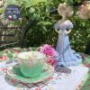 Trong lòng tách và lót tách, nghệ sĩ gốm Foley điểm vẽ nụ hồng tông màu rất xinh xắn nổi bật với tông xanh bên ngoài