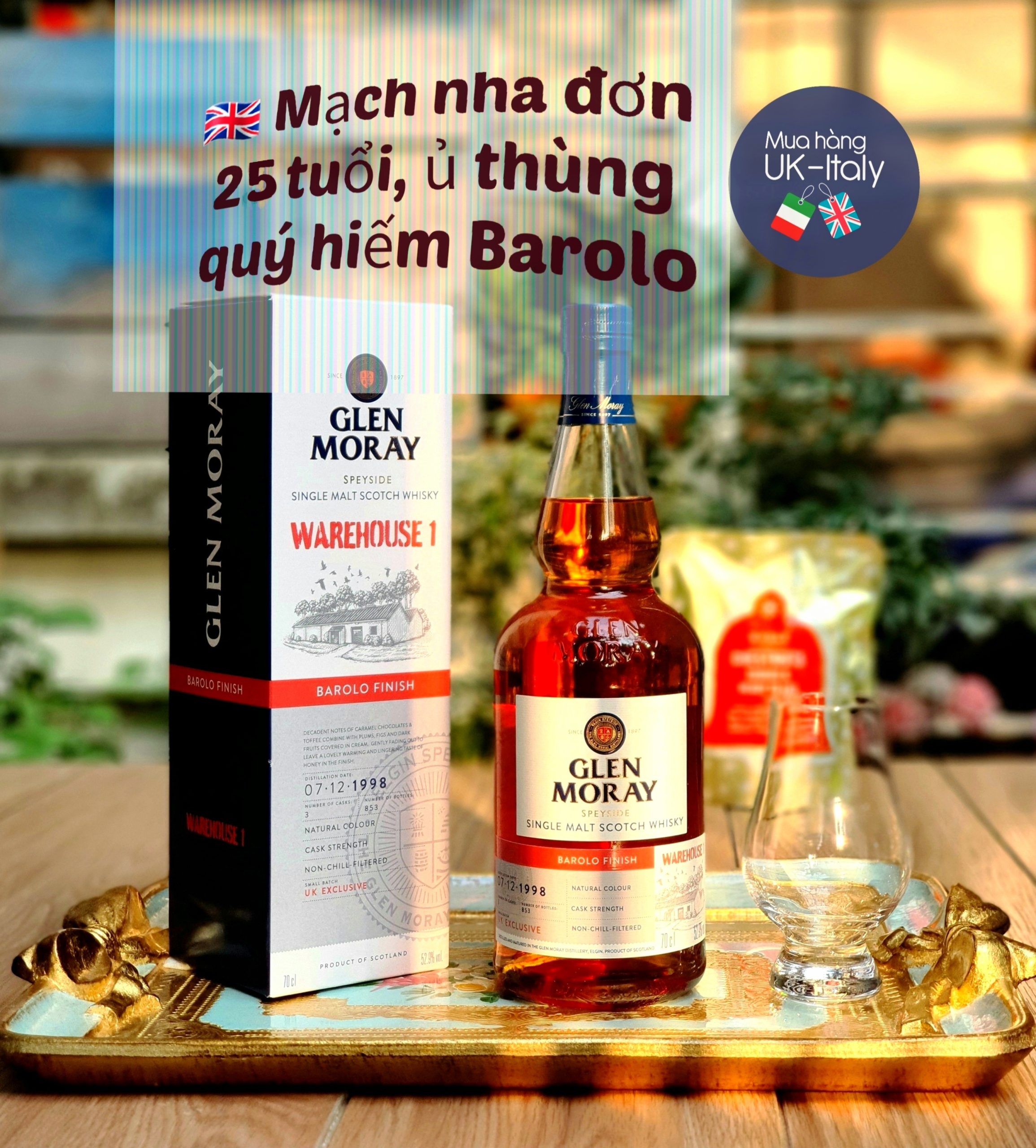 Glenmoray 25yo “WareHouse”: Barolo Finish – Cask Strength ‘52,9%’: chỉ có duy nhất tại Anh quốc (UK Exclusive)