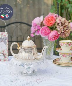 Bộ trà 6 người hoa hồng mạ vàng hào sảng Salisbury 21 món