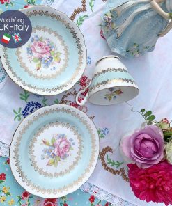Bộ trà 2 người xanh da trời phấn điểm hoa hồng Harrowby