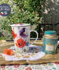 Tách cao có nắp đúc hoa thu mẫu đơn Royale