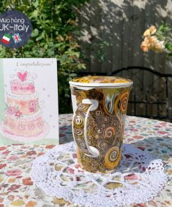 Bình hoa gốm tím cô gái Klimt cầm quạt