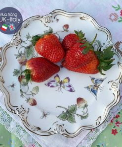 Đĩa bánh, hoa quả dâu tây bướm xinh đẹp