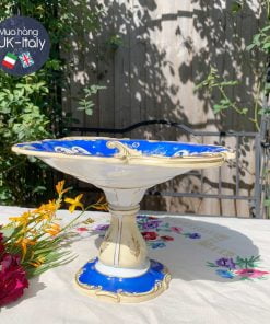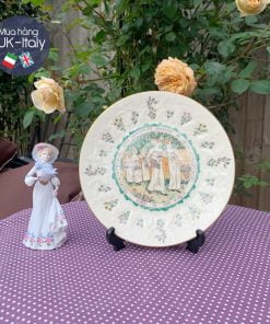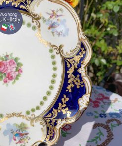 Đĩa bánh cổ viền nổi gân gốm sóng vẽ tay chim thế kỉ 19
