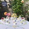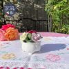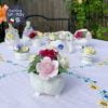 Hoa hồng sứ tạo tay cuả những thợ gốm nữ xưởng gốm Aynsley c.1960 đẹp rạng rỡ khi bày cùng tách chén, điểm bàn tiệc bên cạnh hoa thật. 3 tông hồng: hồng nhung, hồng phớt, hồng vàng nhẹ rất mịn màng vào mắt người ngắm.