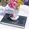 Hoa sứ hình ốc Aynsley với bông hồng nhung, thu mẫu đơn hồng, thu mẫu đơn xanh bắt mắt.