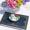 Hoa sứ hình ốc Aynsley với bông hồng nhung, thu mẫu đơn hồng, thu mẫu đơn xanh bắt mắt.