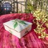Hộp sứ xương trắng nõn với bó hoa linh lan trên thành hộp & trên nắp hộp & cả trong lòng nắp hộp.
