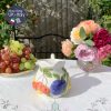 Hũ, bình rót xưa hoa quả nổi lê, chanh, mận, cherry theo phong cách nhà quê.