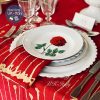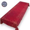 Khăn bàn Linen Luxe đỏ rượu vẽ vàng ánh hoàn toàn bằng tay tạo vẻ đẹp nổi bật cho buổi tiệc.