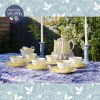 Khăn bàn Toille De Jouy dùng cho set up bàn ăn xanh trắng và sắc màu tôn lên vẻ đẹp món đồ cần ‘khoe’ tế nhị.